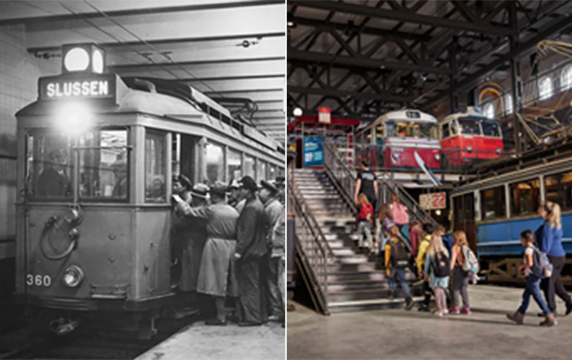 Vi reser lokalt med T-banan till Spårvägsmuseet och får en guidad visning!